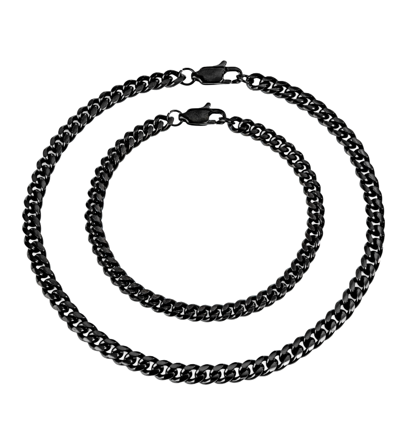 Armband Vader Zoon Set Cuban Link Zwart | 4 mm