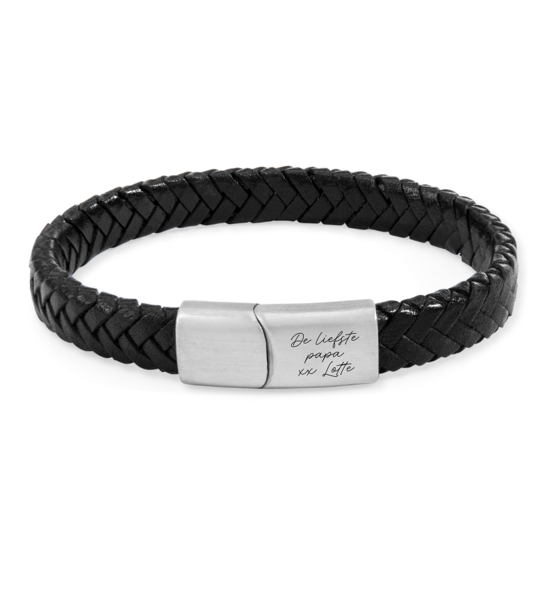 Leren Armband Heren met Eigen Handschrift | Zwart