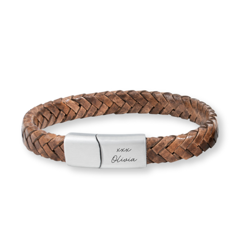 Jouw initialen, vereeuwigd in je eigen handschrift op een stoere leren armband. Een krachtig teken van wie jij bent of wat je dierbaar is. Het robuust gevlochten leer en de persoonlijke gravure maken dit sieraad uniek en karaktervol. Lees meer.